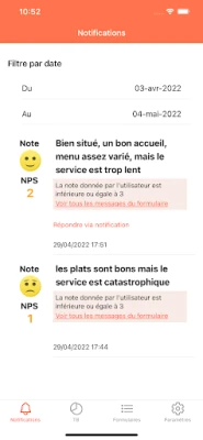 L'application permet aux managers feedback.ma de gérer les retours clients: commentaires, évaluations, notifications instantanées suivant leurs critères.
