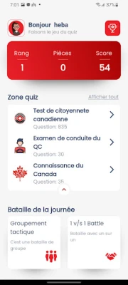 - Prepare for your Driving Test - Increase your knowledge of Canada - Guess the word game - Math Quizzes - Playing with Friends - Online Leaderboards - Engage in combat with a random participant. - Earn coins and convert them to money