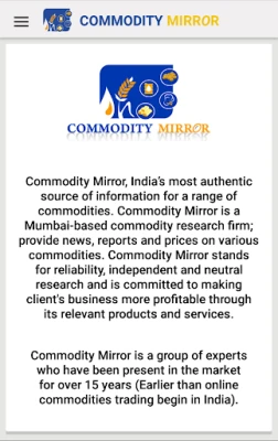 Commodity Mirror is a Mumbai-based commodity research firm; provide news, reports and prices on various commodities. Commodity Mirror stands for reliability, independent and neutral research and is committed to making client's business more profitable through its relevant products and services.