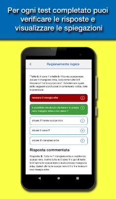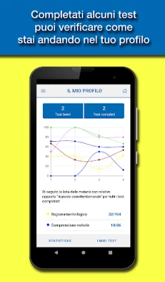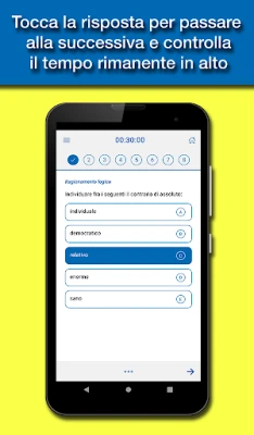 The app is designed to simulate as close as possible the test you actually have to deal with, with all the topics of the test: Logical skills, Verbal comprehension, Italian grammar, Computer science, General knowledge, English.