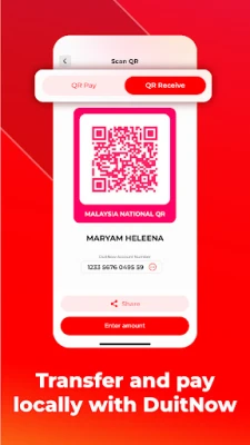 ● Pay or receive money with DuitNow QR.