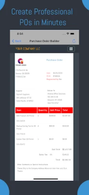 Purchase Order Builder is a powerful app that lets you create professional Purchase Orders, Invoices & Estimates in minutes. Easily Prepare digital Purchase Orders, Invoices & Quotes and email them directly to your suppliers & Customers in PDF format. This app also allows you to easily track outstanding orders and accounts payable for your business by easily viewing the status at any time.