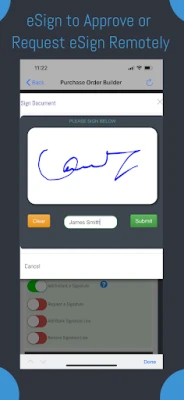 - Includes a Virtual Signature Pad to allow quick authorizations on the spot or remotely. This helps to speed up PO approvals.