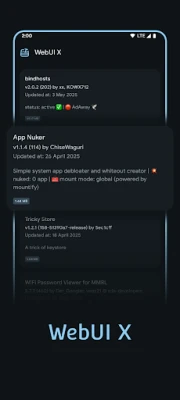 Originally introduced by the KernelSU team in version v0.8.1, WebUI X allows module developers to configure and present intuitive web-based interfaces directly within supported managers — no extra setup required.